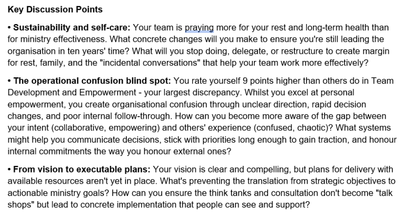 - highlights key areas for discussion